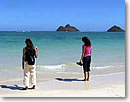 次は、パリ・ハイウェイをカネオヘ方面に走り、「カイルア」に行きましょう。その先には、私の大好きな「ラニカイ・ビーチ」があるのです。細かい白い砂にエメラルド・グリーンの海。まるでおとぎ話に出てくるような素敵な静かな海なのです。ここでは、いつ来ても心が洗われ、落ち着きます。この風景だけはどこの国にもありません。ハナウマ湾の群青色とは対照的に、ここの海の色はきれいなエメラルド・グリーンなのです。裸足になり、砂の上に直接座って、大地のエネルギーを感じてみましょう。地球規模で自分ことを考えられます。「こんなちっぽけな自分でも」って… 原点に戻った気分になれるところなのです。