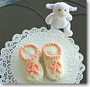そのほか、今年の目標であった「作りかけのキルトたち」を日々、完成させるよう頑張っています。やはり「癒し」ですよね。やる気満々です。先日はサンプラーズキルト、キルト展に出展するキルト、ベビーのプレゼント用のスタイ、そして今はカラーリリーのベビーキルトがもう終わりそうです。すごい勢いだと思いませんか? 次は、昔から手掛けているアンティーレイにいただいたパイナップルです。コットンのキルト芯を使っているので、やりにくくて、途中で投げていました。これと娘のドルフィンを完成させる予定です。その合間に、ちょっと遊び気分で、赤ちゃんの靴の形をしたケーキをスタイと一緒にプレゼントしました(写真右)。「どうです、ちょっと可愛いでしょ?」。もちろん手作りですよ。