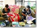 久しぶりに、アンティーレイにお会いしてきました。アンティーは数ヶ月前まで、シェラトン・ワイキキ・ホテルで毎週金曜日に、ハワイアンキルトのデモンストレーションを行っていました。ところが、いろいろ事情があり、今は毎週火曜日の朝9時半から12時まで、JWマリオット・イヒラニ・リゾート&スパ・ホテルのみでデモンストレーションを行っています。イヒラニまではちょっと距離があるので、しばらくお会いできませんでした。久しぶりのアンティーは相変わらず可愛く、(髪を少しショートにしていました)キルティングのマスターでした。彼女の横に座っているだけで、私はリラックスできます。やはり、キルトに囲まれていると幸せですね。忙しい毎日の中、1週間に1時間でもこのような素敵な時間があると元気になれます。 |