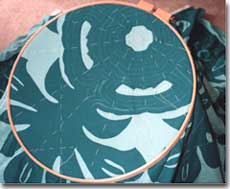 まずは私の大好きな色の組み合わせ。キングサイズベッドというとにかくシングルベッドを2つ合わせた、でっかいベッドがアメリカにはあるのです。このベッドのコンフォートを作り続けて2年6ヶ月。寒い(ハワイも冬は寒い!というか肌寒く、必ず布団などが必要になる)冬を2回も布団なしで過ごしてしまった。なので、我が家には暖かい布団、兼コンフォートはこれが完成しない限り存在しないのです。とにかくでかくて!キルトをするのに、ものすごく肩がこります。大きいフレームを使ってキルトするのですが、これがまた大変。でもこれが完成すると大変なことになります。なんせ、何年もかかって仕上げるわけだがら、相当な値打ちがあるわけだ!!!出来上がった時点で、すぐにみなさまにお知らせいたします。2000年中には仕上げたい!!!