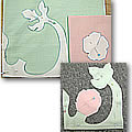 いつもと同じようにアップリケ生地をカッティングします。今回は、花のアップリケをピンク色、茎のアップリケをミント・グリーンの2色使っているので、下のアン先生のポイントに注意しましょう。