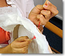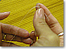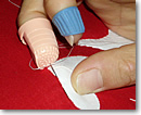 ![]() 「テコの原理」で針を中指で押しながら2-3針ずつ縫います |