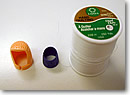 では、いよいよ指ぬきを利き手の中指に、指サックは利き手人差し指にはめ、アップリケ模様のなだらかな部分から縫い始めましょう。