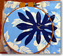 今回は、7インチのフープを利用しました。これはフープの中間に溝があり、3枚の厚い布にも使えてしまう、小さいけれどしっかりもののフープなのです。小物のキルティングに便利なこのフープは、アン先生から購入。ご希望の方は、info@anne-hawaiianquilt.com まで、お気軽にお問い合わせください! アップリケ生地の縫い代を織り込みながら、たてまつり縫いでアップリケします。真下に針を入れて、斜め後ろ3mmくらいで針を上に出します。縫い目は見えないように縫いましょう。谷の部分は注意を払いながら細かく縫います。たてまつりでアップリケを1周縫い終われば、仕付け糸を取り除きます。