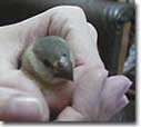 Sharolyn right away. I was just amazed at how well she can care for sick and injured birds. Right away, she could tell the bird was in distress, and knew what she had to do. Sharolyn brought the bird, a little java finch, to the office today, after a restless night of thinking they’d lose the little bird. She came equipped with a heating pad and a special formula, which she fed the bird regularly.