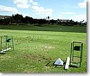 1時間ほど前に着き、練習をするためにボールを買いに行くと「今日プレーする人は練習タダだよーん」とのこと。「ほぉ〜ラッキー、俺はいい日に来た!」と思ったら… 「いつでもタダだよ〜ん」との事! ほぉ〜オーナーが変わればここまで変わるか… とコオリナのランクがBBBからAAAに急上昇! さっそく練習場へ… ピラミッド状に積み上げられたボールを打つ打つ打つ… せっかく積んでくれたのを崩すのは気が引けるがとにかく、ひたすら打つ打つ打つ… 何てったってタダ! さてようやく疲れたところで宿敵アラン・ヤマモトの参上。しかし時間がないのでスタート。はははザマーミロ… 練習はタダだと言ったら「なに〜」ととっても損をしたような顔。イッヒッヒ… ザマーミロ… 2連発。いつもギリギリにくるからだ… あっはっは!