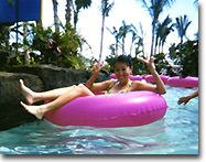 | HOT HAWAIIAN WATERS ADVENTURE PARK TIP: Check out their web site at www.hawaiianwaters.com for great deals. You’ll also find helpful tips, operating times and special promotional information. The park also offers other attractions like a wave pool, volleyball courts, and even a Birthday Hut. |