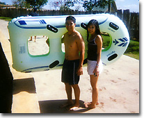 Lunch was good. We each chose our favorites among the selection of pizzas, hot dogs, hamburgers, and even Spam musubis! Drained by the mighty Hawaiian sun, everything tasted really good! Refueled for the afternoon, and with a new coat of sunscreen on us, we headed out again.