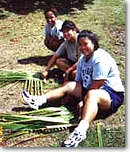 It was absolutely amazing to find that such a wonderful learning environment exists in the mountains of Wai`anae, or anywhere, for that matter. The Hawaiian Studies Program (HSP) at Wai`anae High School was started five years ago, through a partnership between Wai`anae High School and Ka`ala Farms. It is open to all students at Wai`anae High School, indiscriminative of academic abilities. The HSP curriculum is integrated and incorporates hands-on, collaborative learning methods. The students learn complex concepts like water quality testing and archaeological mapping, but because the environment is so culturally meaningful to them, they take pride and ownership of their learning.