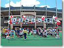 今日はよしの日本語学校の運動会である。ハワイで「運動会」なんて想像がつかなかったけど、会場のハワイ大学の屋外運動場へ行ってみてびっくり。こりゃーほんとに運動会だ。幼稚園から中学生までの子供たちたち