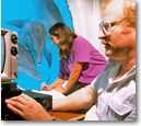 学校終了後、まずは腹ごしらえ。みんなで、キャンパス近くのラーメン屋さん「 えぞ菊」に行く。今日のメンバーは、ティム、ウィリアム、スーザンにケリー(いつものコンピューター仲間! )。みんなお国は違うけど、やっぱり和食は人気者なのだ。さて、3台の車に分かれていざシーライフ・パークへ。闇の中、イルカのタンクの横を地下にとんとん下りていったところに怪しげな実験室があった。ドクター・マーテンは髪の毛が一箇所だけ立っちゃったりしてて(これ、内緒!)、思いっきり「博士」って感じだ。毎日夜になるとここに来て、イルカくんたちと窓ごしにお話をしているらしい。ふむ。ちょっと怪しい世界かも。