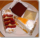 春休み用に友達と共同でレンタカーをすることにした。お昼頃、ワイキキの格安レンタカー屋にいき、車を入手(安いだけあって、かなりぼろい感じ。大丈夫か??)。夜、カイムキの「Hale Vietnam」でPho(ベトナム風うどん? ラーメン? とにかく、ここのPhoのスープは絶品!)を堪能して、それからその近所にある最近注目の2件のケーキ屋さん「JJ Pastry」と「Cafe Laufer」でケーキをテイクアウトして「食べくらべ」をしようと食いしん坊仲間ならではの企画が催された。最初に「Cafe…」でピーチトルテとナポレオンパイを、それから「JJ」にいき「チョコレートケーキ」と「NYチーズケーキ」をそれぞれ注文して、家に持ちかえる。食べ較べの結果はノ味は甲乙つけがたく両者に軍配。でも、プレゼンテーションは「Cafe..」のほうがやや勝ちか?!ま、いずれにしろ、毒々しい色がついた砂糖の塊であるアメリカのケーキにウンザリしている我々にとっては、この2件はありがたーい存在なのだ。