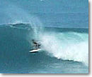 ワヒアワのパイナップル畑を過ぎるといつもの様に目の前にはノースの海が広がりいやがおうにも気分を高めてくれます。波がかなり大きいみたいで、まだビーチまで10分以上もかかる距離にも関わらず、はるかアウトには巨大なブレイクが見えていました。冬本番って感じです。ハレイワから西の方面は海岸線がブレイクした波のしぶきのせいでうっすらと白く霧がかっていました。まずは、ハレイワのアリイビーチパークで波チェック。サイズは6〜8フィートでしたが、うねりの方向が悪いのか本領は発揮していない感じでした。なかなかアウトからのブレイクがインサイドのトイレット・ボウルと呼ばれるセクションまでキレイにつながらず、つながったとしてもほとんどクローズ・アウトで抜けられないような波でサーファー達はてこずっている様子でした。次のチェックポイントはエフカイのビーチパーク。ここからだとある程度オフ・ザ・ウォールからロッキー・ポイントまでの波をチェックする事ができます。もちろんパイプラインもです。ビーチパークに近づいてくると、かなり良い波がブレイクしているのかやたらとストリート・パーキングしている車が増えてきて自分のスペースを探すのにも一苦労。ボクもストリートに車をとめて、とりあえず波チェックです。ノースショア独特のツルツルっとしていて気持ちの良い珊瑚の砂の上を歩きながらアウトに目をむけると何キロかはある広いビーチでサーファーが入っているのはパイプラインだけ。しかも30人以上も入っていてとんでもない状態。その他のポイントはクローズ・アウトで、とてもじゃないけど入れるようなコンディションではなかったです。