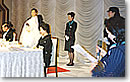| 毎週、思い出のスナップを紹介しています。こちらは結婚式恒例の寿アナウンスの様子。こちらは大宴会だったのでみんなちょっと緊張。 | ||||