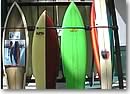 展示物のなかには、いまでも現役でアラモアナ・ボールズの波に乗るベン・アイパのボードや、サーフ・ムービーの名作「ビッグ・ウェンズデー」にも出演していた我らがジェリー・ロペス大先生の乗っておられたブランド、「ライトニング・ボルト」のボードなど数え挙げればきりがないほど、素晴らしいボードが展示されていました。なかには、全て木製で少し腐食しているようなものまであり、やはりサーフィンのメッカ、ハワイだからこそこれだけ集められたんだなぁ、と思わざるを得ませんでした。