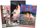 挙式の場所探しに役立ったのが、日本の情報誌「地球の歩き方ムック 海外挙式&ハネムーン」。写真や立地条件をチェックし、彼といろいろと見学にも行きました。ハワイにも、ハワイ・ウェディングの雑誌があります。「ハワイ・ブライド&グルーム」、「パシフィックリム・ウェディングス」の2つです。これらは、まさしく結婚式を間近に控えたロコのバイブル的存在。ロコの結婚式やハワイらしいデコレーションの美しい写真が多く、アイデアがどんどん浮かんできて、見ているだけでも十分に楽しめます。