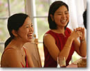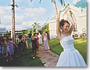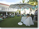 ●ゲット・ザ・パーティー・スターティッド! 通常、ハワイの結婚パーティーでは、このあとフリータイムになります。私たちもパーティーが始まって10分程度で食事、歓談の時間にしました。日本の結婚披露宴では、食事の前に長いスピーチがあったりしますよね。ハワイでは、何より食べるのが先です! お腹がいっぱいになってから、ようやくプログラムの開始となります。 |