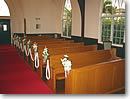 ![]() 大きな窓から緑がのぞく、開放的なチャペル内 |