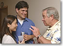 私: 日本の大学を卒業後、JALEX日本語教師プログラムに参加し、1995年から2年間アイオワ州の高校で日本語を教える。帰国後は旅行会社に勤務し、5年間のOL生活の後、米国人の夫と結婚。2004年1月にハワイに引っ越して以来、仕事と家庭を両立しようと「日々是決戦(?)」という生活を送っている。趣味はスキー。ハワイで一番恋しいもの… それは「雪」かも?