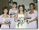 ●美しいブライズメイドとやんちゃなグルームズマン アメリカと日本の結婚式で、異なる部分はたくさんありますが、中でもアメリカの結婚式で特徴的なのは、新婦のお世話役「ブライズメイド」と新郎の世話をする「グルームズマン」の存在ではないでしょうか。新郎新婦の兄弟姉妹や友人が式の当日、新郎新婦の手となり足となり世話をするのですが、通常おそろいのドレス、タキシードを着るので、見た目にも華やかさを増し、式当日も大切な役割を果たす訳です。その中でも一番重要な役割を果たすのが「メイドオブオーナー」と「ベストマン」。主人は自分の弟にベストマン、友人2人がグルームズマン、私はデトロイトの従姉にメイドオブオーナー、日本からの友人2人にブライズメイドを頼みました。ドレスは薄い紫(ラベンダー色)で、全体の色も私の好きなピンクとラベンダー色に統一されていました。