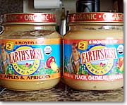 So, say you’re at the store. What do you buy? Most grocery stores carry Gerber (America’s classic baby food brand), and its organic cousin, Tender Harvest. Luckily these days, other organic choices like Earth’s Best are becoming more mainstream, and are priced pretty competitively with conventional baby food. Not only are the ingredients more trustworthy (no by-products or preservatives used), but Marsden and I agree they taste better, too. The downside to the organic stuff is that the choices are limited compared to Gerber’s expanded selection, and to my knowledge, none of the organic brands have microwaveable meals. But it helps to keep a few of the jar kinds handy anyway. |