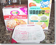 ●Suzanne’s take on rice cereal, jar food, snacks, and more When I opened a package from my mother-in-law the other day, I found half of the contents MISSING! In their place was a letter from the port authority in Hawaii, letting me know that a bunch of stuff had been confiscated because they contained, in some shape or form, poultry products. The items in question were ? get this ? baby food. Yep, my mother-in-law sent a box full of gourmet Japanese baby food, most of them containing chicken pieces or broth. My heart sank thinking she spent $50 to send a half-empty box over the Pacific Ocean, but moreover, what was I supposed to feed Marsden for dinner!? |