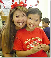 ハワイと日本の学校を比べてここが違うと思うことの一つに、親が学級に出入りする機会が実に多いということ。遠足の付き添い、チューター(学習指導)、クリスマス・パーティー、ランチと休憩時間の監督などその内容は様々ですが、親が直接子供に関わる形のお手伝いが大半です。例えば、遠足には毎回4〜5人ずつの父兄が参加し、5〜6人の児童に1人の割合で大人が付き添って行動します。チューター(学習指導)は低学年の読書の介助をする仕事で、実は現在、私もちいちゃんのクラスに週1回30分程通っています。幼稚園では、個人のレベルに合わせて手作りの単語カードや小冊子で読みの練習をさせるのですが、確かに先生1人ではここまで手がまわらないはずで、父兄の力を借りるのは大正解。毎週必ず行けなくても「イッツOK!(大丈夫)」のユルい拘束なので、ママ達もけっこう気軽に参加してるみたい。私も最初こそ「LとRの発音がアヤしい日本人がやっていいもんだろーか?」と躊躇したものの、先生から「大丈夫、一回やれば要領が飲み込めるわよ。簡単だから」と乗せられて、それなりに務まっています。子供達の顔と名前、性格もよくわかり、これがけっこう楽しかったりもして。あとクリスマス・パーティーでは、クラフトやゲームなどの手伝いとお菓子の用意も父兄の役割。ランチと休憩時間の監督というのも、ハワイならではの仕事。生徒の休み時間は先生も休み時間(!)のハワイでは、誰かが子供達を監督せねばなりません。ちいちゃんの学校では、「ジェネラル・エイド」という役職の職員が監督をしているのですが、広い校庭やカフェテリアを1人でカバーするのは無理なので、やはり父兄がボランティアでお手伝いをしています。 |