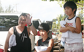 待ちに待ったツアー当日。いらっしゃいました〜! 満面に笑顔を浮かべた足立ファミリーが。お父さんもお母さんも羽翼くんも銀河君も、とっても明るくて元気一杯。ノリの良さはぴか一の仲良しファミリーに、取材陣もつられてニコニコです。