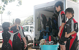 「お待たせしました〜」 「よーし、まずはノースショアに向かうよ〜」 ●北米初! 子供でもできる新型ダイビングとは?