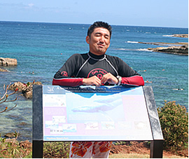 アロハ! みなさんのハワイで叶えたい夢の実現をお手伝いしている、ハワイの歩き方2代目イメージモデルのサムです。今回は兵庫県の足立さんファミリーの夢を叶えちゃうよ。高いところが大好きで、バンジージャンプやスカイ・ダイビングなど何でもござれのお父さん。神秘的なもの、綺麗なもの、自然が大好きで、好奇心旺盛なお母さん。そして、両親がすることは何でもチャレンジしてみたい長男の羽翼(つばさ)くん(11才)と海洋生物が大好きだけど、ちょっぴり怖がりな次男の銀河(ぎんが)くん(8才)。元気一杯で笑いの絶えない4人家族です。このおもろ明るい足立さん家族の夢、ハワイの歩き方が叶えちゃうよーっ! 夢請負人サム:この足立ファミリーの夢は、ハワイで大冒険をすることなんだって。よーし、みんなを満足させるような大冒険を計画しようじゃないの! そんな中、 「ハワイの大冒険なら任せて下さいっ!」 と、力強く名乗りを上げてくれたのが、オプショナル・ツアー会社「アウトドア・ハワイ」のトモさんです。 「ハワイの海をとことん遊びつくしてもらいましょう!」と、胸を張るトモさん。元高校球児で海が似合う、サワヤカ男です。何と、足立ファミリーのために、特別ツアーを組んでくれることになりました。 編集部:「あのー、足立さんのお父さんは、高いところから飛び降りたりしたいんですけど〜」 トモさん:「大丈夫です(キッパリ)! お父さんにはオアフ島のある場所から飛び降りでいただきます」 編集部:「で、お母さんは自然や美しいものが好きなんですけど〜」 トモさん:「美しいです(キッパリ)!」 編集部:「で、子供たちは、波とたわむれたり、海洋動物を眺めたりしたいそうなんですけど〜」 トモさん:「たわむれまくり、眺めまくりです(大きくキッパリ)!」 た、頼もしいぞ、トモさん。ああ、トモさんから後光が射しているようです。 ●ハワイでのスペシャル冒険ツアー当日! いざ向かった先は?