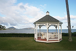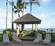ホテルのロビーを抜けると、すぐそこにビーチが。ビーチに出る手前の左手側にはガゼボやきれいなプールもあり、プールサイドでのんびり本を読んだり、海を見ながら泳ぐことも出来ます。 さらに先に行ってみると、2席しかないガセボがありました。聞いてみるとカップルが特別なディナーを楽しむために作られたもので、よくウエディングの後などに利用されているそうです。夕日を見ながらのディナーなんてロマンチック! |