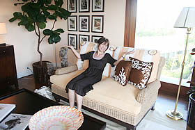 今回はいつもは庶民派のアツコが「ハワイでセレブな体験をしてみたい!」という夢を叶えました。世界中のセレブに愛される珠玉のリゾート、「ザ・カハラ・ホテル&リゾート」に泊まり、セレブご用達デパート「ニーマン・マーカス」でゆったりとお買い物をしましたよ。ワイキキから車で10分ほど東に位置するオアフ島有数の高級住宅地、カハラ地区にあるのが格調高く気品ある「ザ・カハラ」。一歩足を踏み入れると高い天井にゴージャスなシャンデリアがあり、さらに目の前に広がる青いビーチにため息が出ます。このふかふかソファに座るだけで、何だか気分はすっかりセレブ。 |