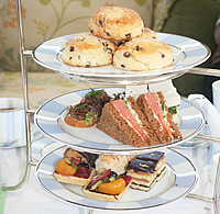 ここで、ホテルに戻ってお茶の時間。ここ「ザ・カハラ・ホテル&リゾート」は、世界的に有名なフランス流紅茶芸術の最高傑作といわれている「マリアフレージュ」の紅茶がハワイで唯一いただける場所なのです。紅茶好きの私はイルカが泳ぐラグーンを眺めながら時間を過ごせる「ザ・ヴェランダ」へ。ハイビスカスとモーブの優しい香りのする「エロス」という名の紅茶を頼みました。フランスの高級磁器ベルナルド製の素敵なポットとティーカップがセレブ気分をさらに高めてくれます。ティー・スタンドにのせられたスコーンやサンドイッチは見てるだけで楽しめます。味はとっても上品。ええ、今とても優雅な気分ですわ。 |