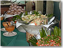 メインデッキが満席だったこの日、約130名の乗客が乗っていましたが、結構整然と列も消化し、バックミュージックのスティール・ドラムの演奏を聴きながら、昼食。揺れの少ないハイテク船として知られるナバテック号ですが、それでも船酔いの心配を完全には拭いきれなかった私。乗船前は食事は控えめに… などと思っていましたが、なんてことはない、快適に食事を楽しめました。ちなみに、この日は晴れでしたが、デッキでは結構強い風を感じたので、いかに揺れの少ない船かがよくわかります。船の種類に限らず船酔いが心配なかたは、その日の天候にもよりますが、酔い止めを持参したり、船内ではデッキで長く過ごす、7UPやジンジャーエールを注文するなど、自分にあった方法で快適なクルーズを! でも、何よりクジラを探すのに熱中するのが一番かも。