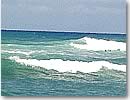 「ユミ、カリフォルニアの波はビーチブレイクだから、カールするのが早いの。だから、早く波をキャッチしないといけないのね。だから、カリフォルニアの人はショートボードを使っている人が多いの。ハワイはリーフブレイクだから、ゆっくりカールするのよ。それから、沖の方から何度も何度も波ができるから、ロングボードで長く波に乗るのを楽しむ人も多いの。今日は風が強いし、潮がだんだん満ちてきてるから、結構波が荒いんだけど、ユミはビーチに近い内側で、小さくなった波で練習するといいよ」