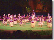 お食事はビュッフェ形式なので、スタッフの指示に従いテーブルごとに料理を取りに行きます。カルア・ピッグやポケ、ロミロミサーモン、ピピ・カウラ(乾燥牛肉)、ポイなどといった伝統的なハワイ料理から、様々な種類のサラダ、チキン、魚、デザートまで、約25種類の料理がズラリ。お食事の間は歌やフラのショーもあり、観客からハネムーンや結婚記念日で来ているカップルが前に出てロマンティックなハワイアン・ウェディング・ソングに合わせてスローダンスを踊る一幕も。楽しい時間はあっという間に過ぎていき、アリイ・ルアウのプログラムは約1時間半で終了します。 |