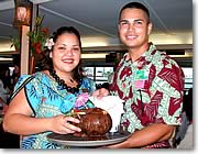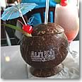 特製ロゴ入りココナツのドリンク「ロコ・ココ」 アリイ・カイ号の特製ロゴが入ったココナツのカップにピニャ・コラダ、チチ、ストロベリー・ダイキリ、マルガリータ、ラバ・フローなどのフローズン・カクテルを入れてくれます。この「ロコ・ココ」は、アリイ・カイ号の船上でしか手に入らない限定品で1杯$10。アルコール抜きでもつくってくれます。($9) ただし、この商品は限定商品なのでドリンク券の利用はできないそう。かわいいカップは、持ち帰りもできるので、お土産にしたい人はスタッフにお願いすると袋に入れてくれますよ。 |