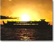 ●アリイ・カイ・ディナー・クルーズ 出航場所:アロハ・タワーのピア5 時間:ワイキキで16:05からバス送迎を開始 出航時間:約17:30出航、約19:30帰港 催行会社:ロバーツ・ハワイ 電話:(808)539-9400 送迎:ワイキキの主要ホテルから ホームページ:www.robertshawaii.com |