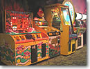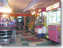 ギフトショップの奥は、いよいよメーンとなるゲームコーナー。まずは、トークンを購入し、ゲームや乗り物を楽しみます。トークンは1つ¢50(2つから購入できますが、$10分買うと2つ、$20分買うと6つのトークンがボーナスとして付いてきます)。大部分のゲームは、トークン1つか2つでチャレンジできます。 数十種類揃ったゲームには、カーレースなど大人も夢中になるSEGAのハイテク・ゲームや、運が良ければトークンがジャラジャラ出てくる一攫千金型のゲームも。パパ、ママもきっとハマってしまうはず。でも、やはり中心となるのは、小さな子供たちを対象にしたキュートでシンプルなゲーム。木のボールを転がして得点を競うボーリングや恐竜の口にボールを投げ込む「キラーTレックス」、カバの口を操作してボールを取りあう「ハッピー・ヒポ」、アヒルを倒す「ワッキー・ダックス」など、4、5才の子供でも楽しめるゲームが充実しています。ゲームの得点によってチケットが出てくるので、それを最後に景品セクションで好きなものと交換できるのもお楽しみ。小さなものでは文房具やオモチャ、大物ではデジタル・カメラや家電製品まであれこれ揃っていますから、ファミリー全員で奮闘してみてくださいね。