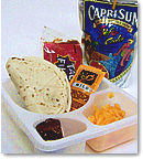 箱の中にはクラッカー、ハム、チーズ、タコスなどと、デザートのゼリーまたはチョコバー、そしてジュースがセットになっています。子供たちはこれをカバンに入れて登校するわけです。でもこの内容は、日本人にとっては食事というよりおやつ。これでランチを済ますというより、ハワイ滞在中に子連れでビーチや公園にでかける時に持って行くといいですね。ハワイのスーパーマーケットのハム/チーズ売り場にあります。値段は$2.99。(左の写真はタコスセット。トルティーヤ、フィリング、スパイス、チーズに、ジュースとお菓子つき。アラモアナセンター・フードランドにて)