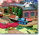 | 男の子に人気「機関車トーマス」のレールシステム・セット。機関車、レールからイラストいりテーブルまで一つずつ買い揃える楽しみがある |