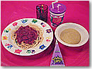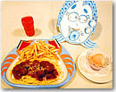 キッズ・メニューは特製のお子さまランチのみですが、魚の形の大きなプレートにはスパゲッティ、テリヤキステーキ、エビフライ、ケチャップライス、フライドチキン&ポテト、サラダと子供が好きな料理がテンコ盛り。フライドキチンは恐竜の形になっているなど見ためにも楽しい工夫がされています。これにオレンジジュース、アイスクリーム、フルーツカップ、おもちゃが付いて$14.95なんて、日本と比べたらグッとおトク。お母さんとシェアしてもいいぐらいの量です。 ●パスタ好きなら迷わず…「オールド・スパゲティ・ファクトリー」