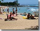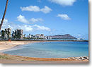 ワイキキの海岸線の中心、デューク・カハナモク像の前にあるのがクヒオビーチ。広めの砂浜とホテルからのアクセスがイージーなことでファミリーに限らずビジターにも大人気です。ここはビーチの先に防波堤があるためほとんど波がなくて浅く、天然プールのような状態なのでベビーでも遊べます。近くにある売店には日本人好みのメニューも満載。また、ボディボードのレンタルやサーフィン・レッスンもあるので、ティーンでも楽しめます。