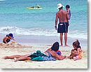 ビーチへ行く時には、曇りの日でもサンスクリーンをお忘れなく。とくに子供は日焼けしやすいのでウォータープルーフのローションでお肌を保護してあげて下さいね。帽子も必需品ですね。なお、ハワイのビーチはすべてパブリック。ビールなどアルコール類は禁止されていますので、お父さん、気を付けてね!