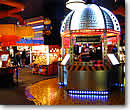 最大収容人員1800人という広大なD&Bは3フロアに分かれ、入口のある2階はレストラン「グランド・ダイニングルーム」やバー、ビリヤード・セクションなど。3階はゲームセクションの「ミリオンダラー・ミッドウェイ」。そして、屋上はビヤガーデン「サンセット・バー」。ゲームセクションではカーレースやビデオゲーム、バスケットボール・ゲーム、ボールを転がして入った穴による得点で馬が進む競馬ゲームなど、大人と子供が一緒になって遊べるゲームがいっぱい。まず、店内のパワーステーションでカードを購入し、ゲームを楽しむごとにカードから料金が引き落とされるシステムなので、現金やコインの計算に煩わされることもありません。