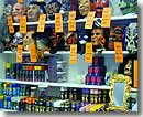 ペッズ・キャンディ&ディスペンサー Pez Candy & Dispenser この時期、アメリカでは各製菓会社から「トリックorトリート」用に、ハロウィーンの特別ラッピングを施したお菓子が登場。子供達を喜ばせています。いろいろ楽しいデザインのものが多いのですが、特筆すべきは「Pez Candy & Dispenser」。一見、何の変哲もなくチープな印象のキャンディ&キャラクター付き容器(ハロウィーン・シリーズのほか、クリスマス、セサミストリート、ルーニートゥーンの各キャラクターなど、様々なシリーズがあります)ですが、実はこれ、熱烈なマニアもいるアメリカの隠れた人気アイテムなんです。コレクターズ・クラブも存在するほどで、古いものはプレミア付きで販売されたりしているのです。しかも、ハロウィーン、クリスマスなど季節のイベントの前後にしか一般のショップに大々的に出回らないので、さらに希少価値がアップする感じです。そんな訳でキュートなデザインのPezディスペンサーを店先で見かけたら、即入手が原則! ロングスなど、各スーパーマーケットで$1.20前後。 |