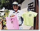 特製Tシャツ($10)を手にするボランティアのミューラー氏 |