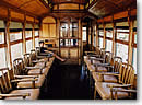 また、毎月第2日曜日に限り、この4両に特別仕様の車掌車が加えられます。この車掌車は1900年、オアフ鉄道会社の初代社長だったベンジャミン・ディリングハム氏のために造られた特別車。マホガニー、コア、オーク、楓(カエデ)など14種類もの木材を使って造られた豪奢な車両で、ディリングハム氏のほか、ハワイ王朝最後の女王リリウオカラニや作家のマーク・トウェイン、ロバート・スティーブンソンなども乗った、いわばVIP車両なのでした。トイレや軽食が作れるキッチンも備えられ(現在は使用されていません)、美しいアンティークな内装は一見の価値あり。この車両に乗車するには特別料金が必要ですが、第2日曜日のみの運行ということもあり、毎回いち早くチケットが売り切れるほどなのです。 |