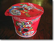 ケロッグ・カップ入りシリアル 朝食メニューとして何かと便利なシリアル。手軽で栄養価も高いオススメ・メニューながら、ホテルに滞在中はちょっとした手間がかかるのがたまにキズです。手間… なんて言ったら大げさですが、ミルクを注ぎ入れるボウルを調達しなければならないため、旅先ではミルクなしシリアルで済ませたりした経験、もしかしたら皆さんもあるのではないでしょうか? そんなわけで今回ご紹介するのが、ケロッグのカップ入り1人前シリアル。カップに入っているので、ミルクを注いで食べるだけ! 小さな子供でも扱いやすい、大きめカップに入っているのがまた便利ですね。しかも後はただポイと捨てるだけ。そのためハワイのファミリーにも、キャンプにバケーションにと、何かと需要の高いアイテムです。シリアルの種類は写真のフルーツ・ループ以外に、お馴染みのコーンフレークなど多種多様。ハワイに着いたら、ぜひ調達してくださいね。ロングスやABCストアその他で$1.80前後で販売中です! |