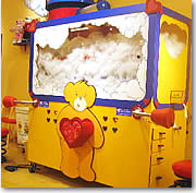 こうしてぬいぐるみに命や声を吹き込み、ぬいぐるみが完成したら、シャワー台へ。実際に水が出るわけではありませんが、これはいわば産湯コーナーとも言うべき場所。生まれたてのぬいぐるみをシャワーできれいにするという、何とも子供の喜びそうなコンセプトですね! ブラシも置いてありますが、皆ここでぬいぐるみの身だしなみを整えるらしく、ブラシにはたくさん毛がついていました。 |